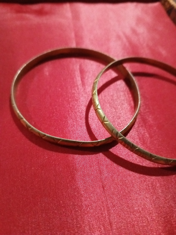 - "The image displays a static close-up of two metal bangles positioned on a dark red, subtly textured fabric surface, within the context of Phakeo, Laos" by FM-jp5zv1, licensed under CC BY 4.0