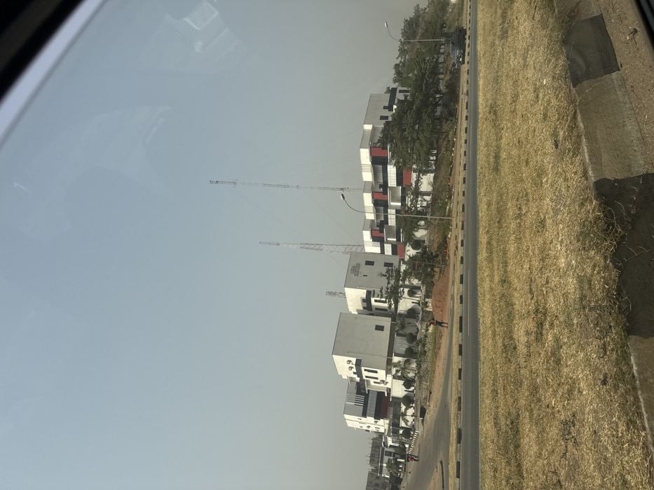- "The image displays an urban or suburban landscape in Aso, Nigeria, under a hazy, light-blue sky, viewed from within a vehicle" by FM-9Hpu83, licensed under CC BY 4.0