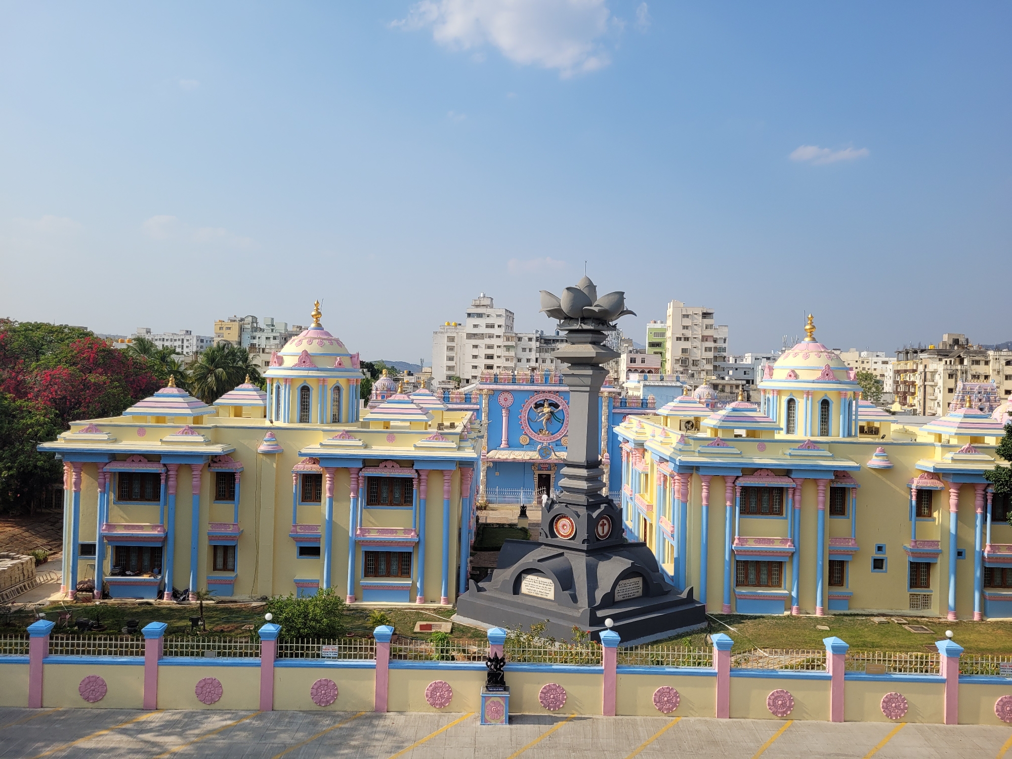 This image captures an elevated view of the Sri Satya Sai Vidya Vihar complex in Visakhapatnam, Andhra Pradesh, India