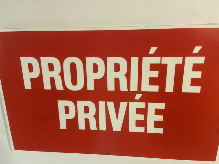 A red rectangular sign with white text reading "PROPRIÉTÉ PRIVÉE" in two lines