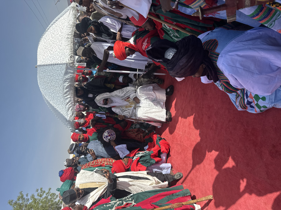 The image depicts a crowded outdoor ceremonial gathering in Zango, Nigeria