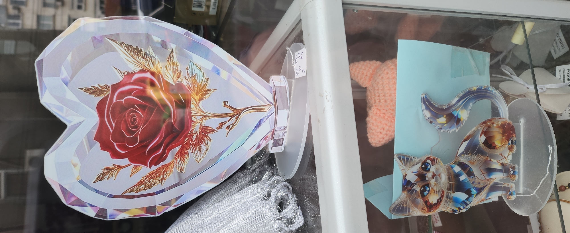 - "The image displays a retail display case containing decorative items, observed within the city of Ruse, Bulgaria" by FM-cNrdi2, licensed under CC BY 4.0