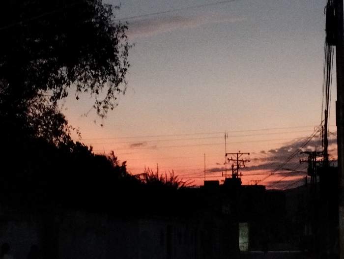 The image displays an exterior urban or semi-urban scene in Guacara, Venezuela, captured during either dusk or dawn