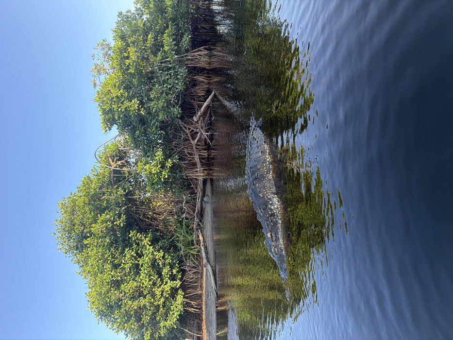 - "A large crocodile is submerged in water near the bank of a river or lake" by FM-TOA2r1, licensed under CC BY 4.0