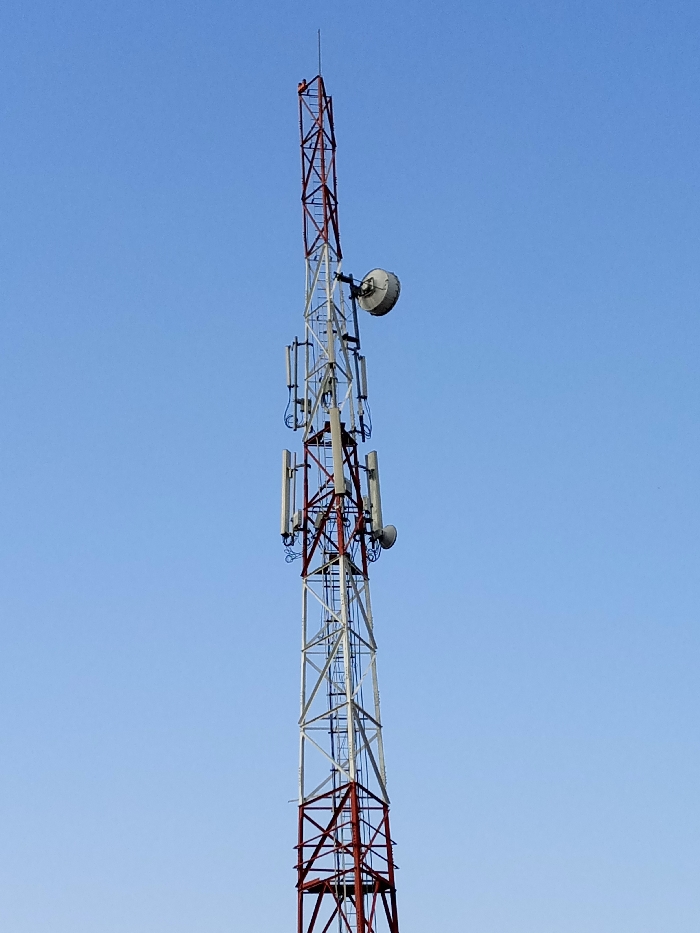 - "A tall telecommunications tower, constructed with a lattice steel framework, stands against a clear, unblemished blue sky" by FM-9Gwob2, licensed under CC BY 4.0