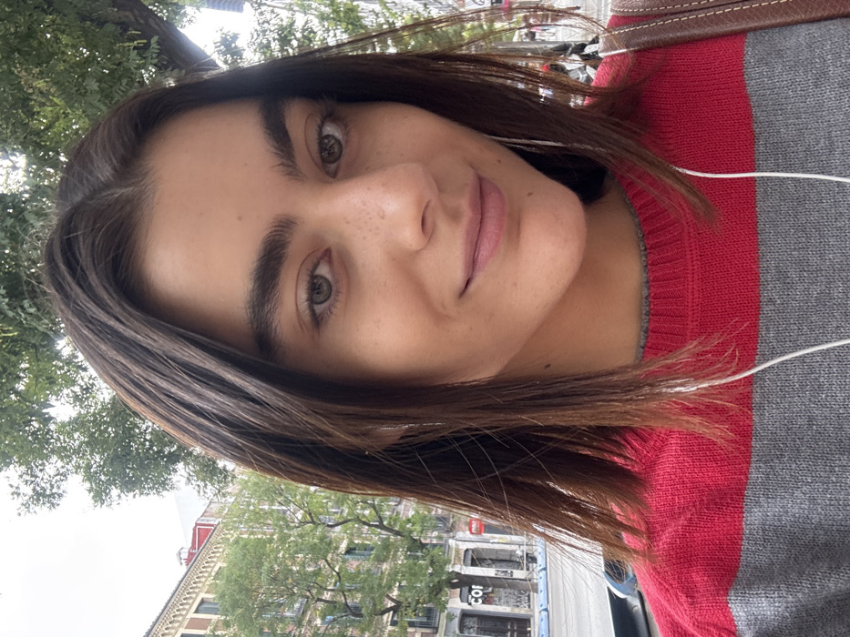 - "A young woman with dark brown, shoulder-length hair and a middle part is centered in a close-up outdoor portrait, exhibiting a subtle smile" by FM-y5FNm2, licensed under CC BY 4.0