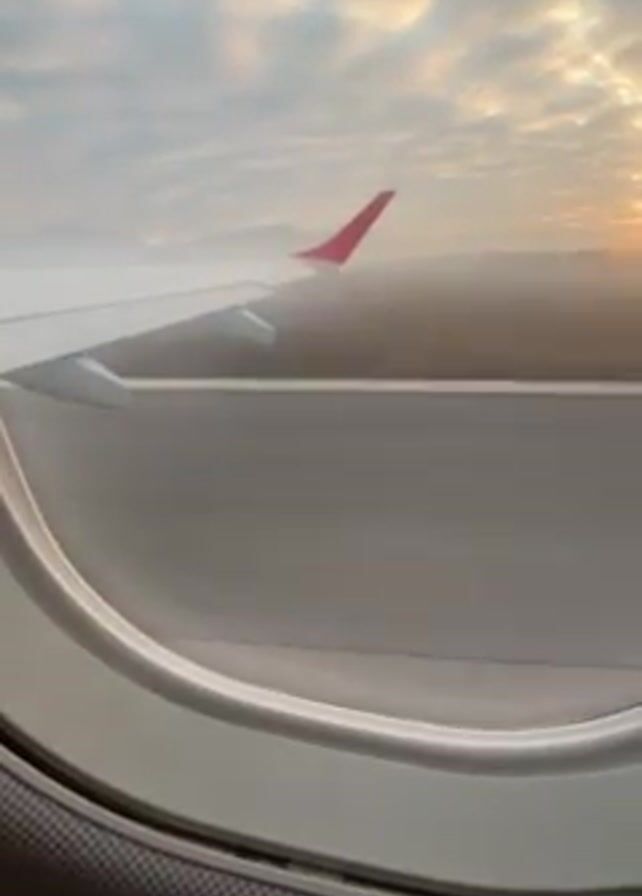 view from an airplane window during takeoff