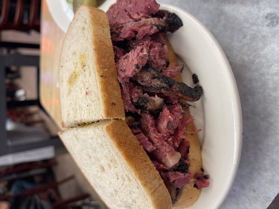 - "A substantial sandwich, consistent with a pastrami or corned beef on rye, is centered on a white, round ceramic plate" by FM-nNGZP2, licensed under CC BY 4.0