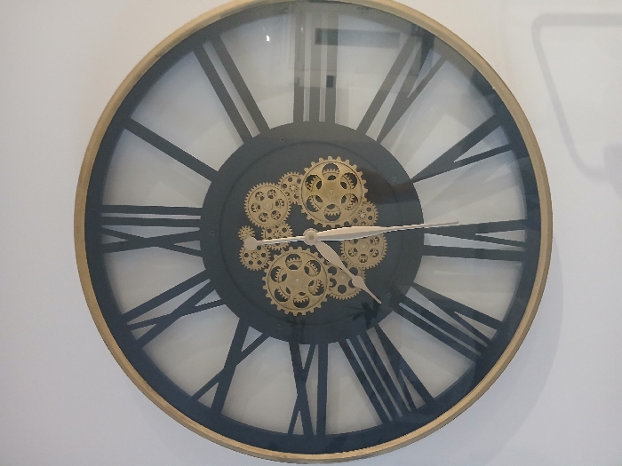 A large, round wall clock is mounted on a plain white wall in Illkirch-Graffenstaden, France