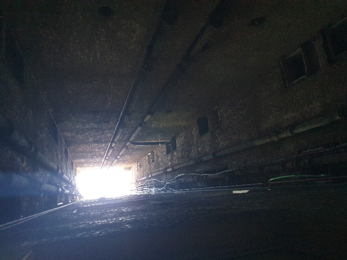 - "The image displays a narrow, elongated passageway, likely a utility tunnel or shaft, located in Kafr Sousa Municipality, Syria" by FM-LJRLv2, licensed under CC BY 4.0