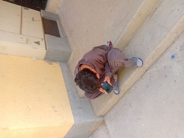 - "The image captures a young individual, likely male, crouching on concrete steps outdoors in the city of Parand, Iran" by FM-jqQSo1, licensed under CC BY 4.0