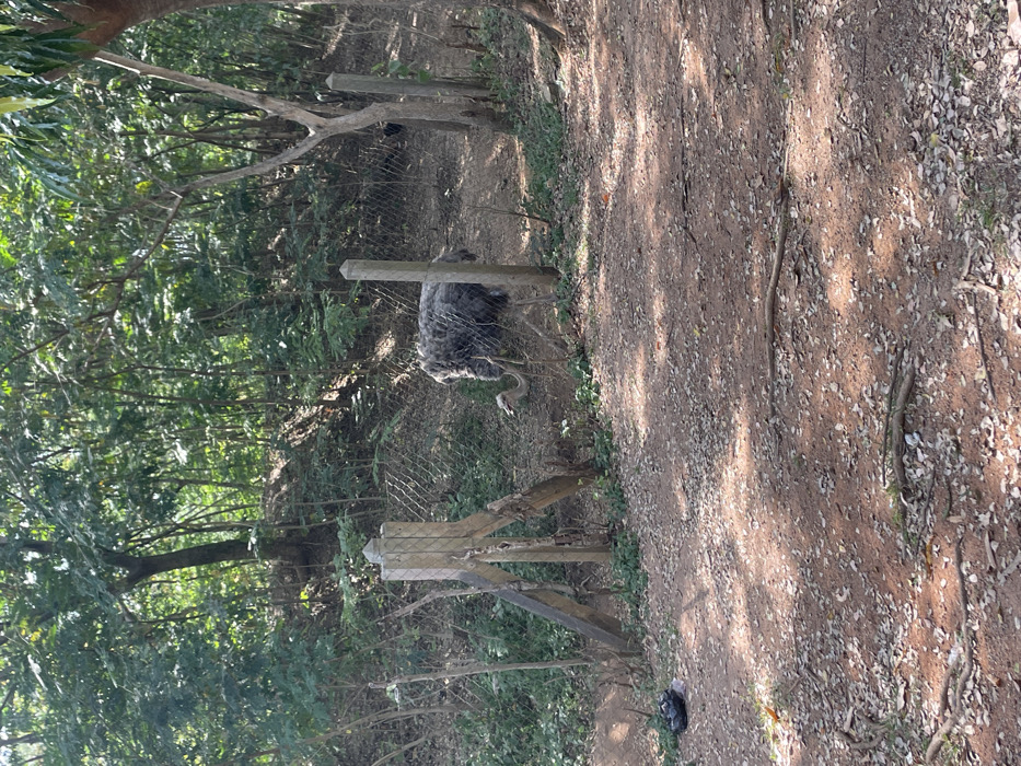 - "A grey-brown ostrich is depicted walking from left to right within a fenced enclosure" by FM-Qymot1, licensed under CC BY 4.0