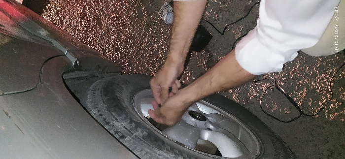 - "The image, captured at 22:43 on October 18, 2025, shows a close-up, low-angle perspective of an individual interacting with a vehicle's tire in Al-Kiswa, Syria, under artificial nighttime illumination" by FM-7hWgi1, licensed under CC BY 4.0