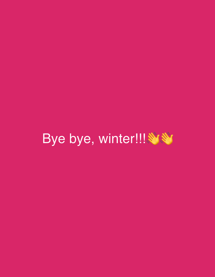 The image features a solid magenta background with the text "Bye bye, winter!!!" displayed in white, centered on the screen