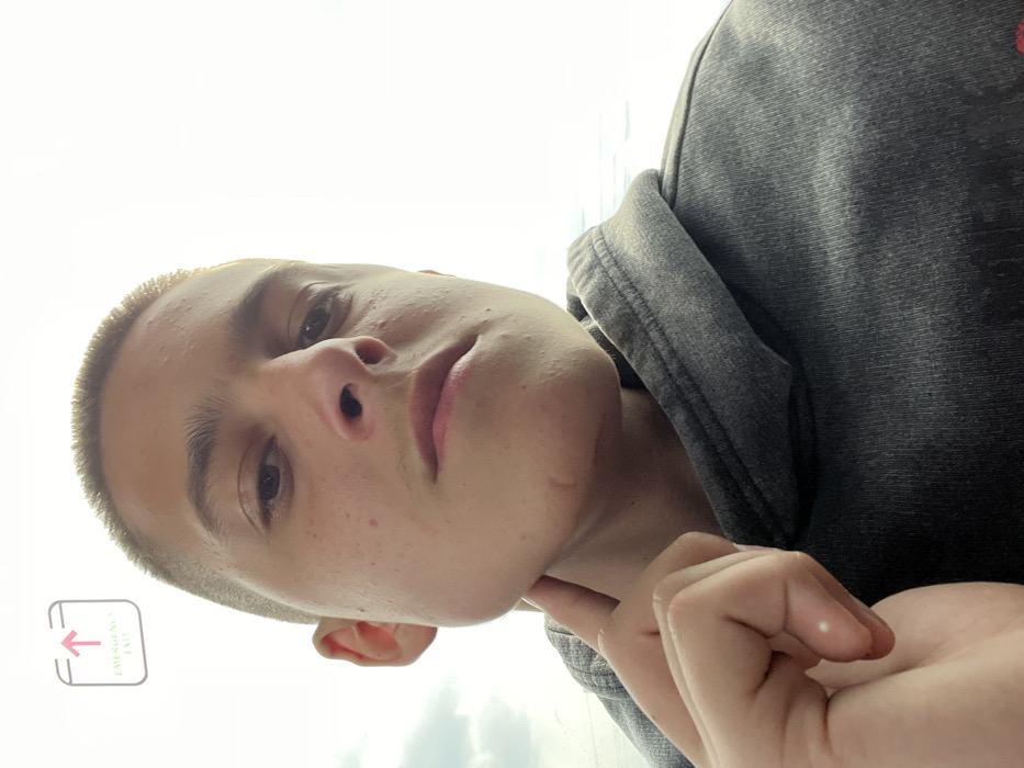 - "The image features a close-up, low-angle perspective of a young individual with a light skin tone and a very short, buzz-cut hairstyle, looking directly forward" by FM-SLV922, licensed under CC BY 4.0