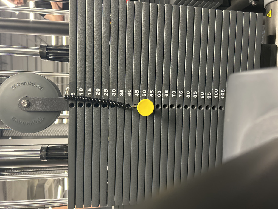 - "The image displays a close-up, angled view of a weight stack on a Technogym exercise machine within an indoor gym setting in Plovdiv, Bulgaria" by FM-lnMPi2, licensed under CC BY 4.0