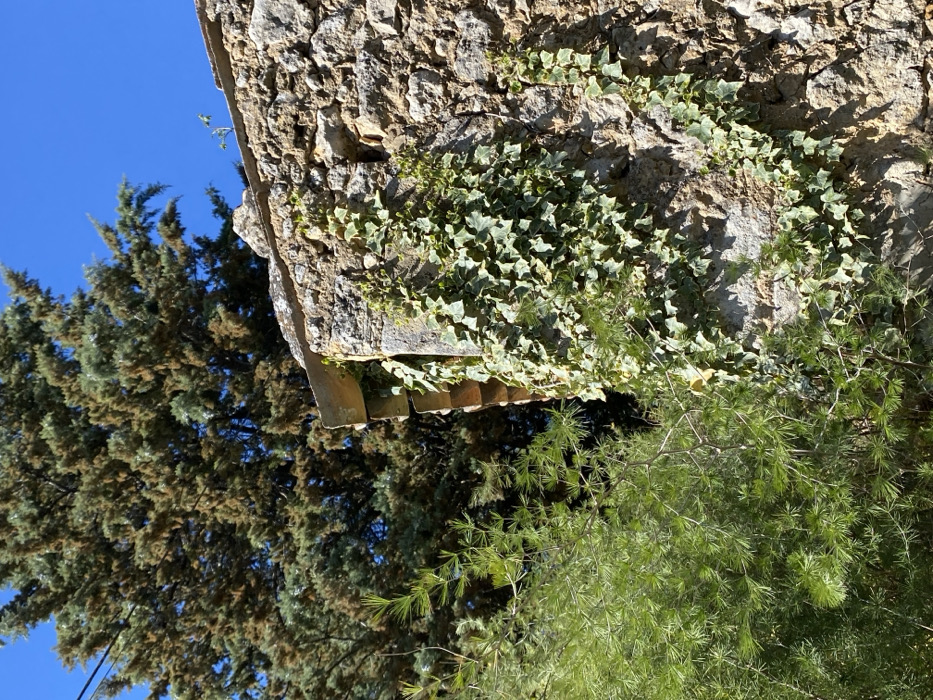 - "The image depicts a stone wall covered with vegetation in Apt, France, under a clear blue sky" by FM-5pNq53, licensed under CC BY 4.0