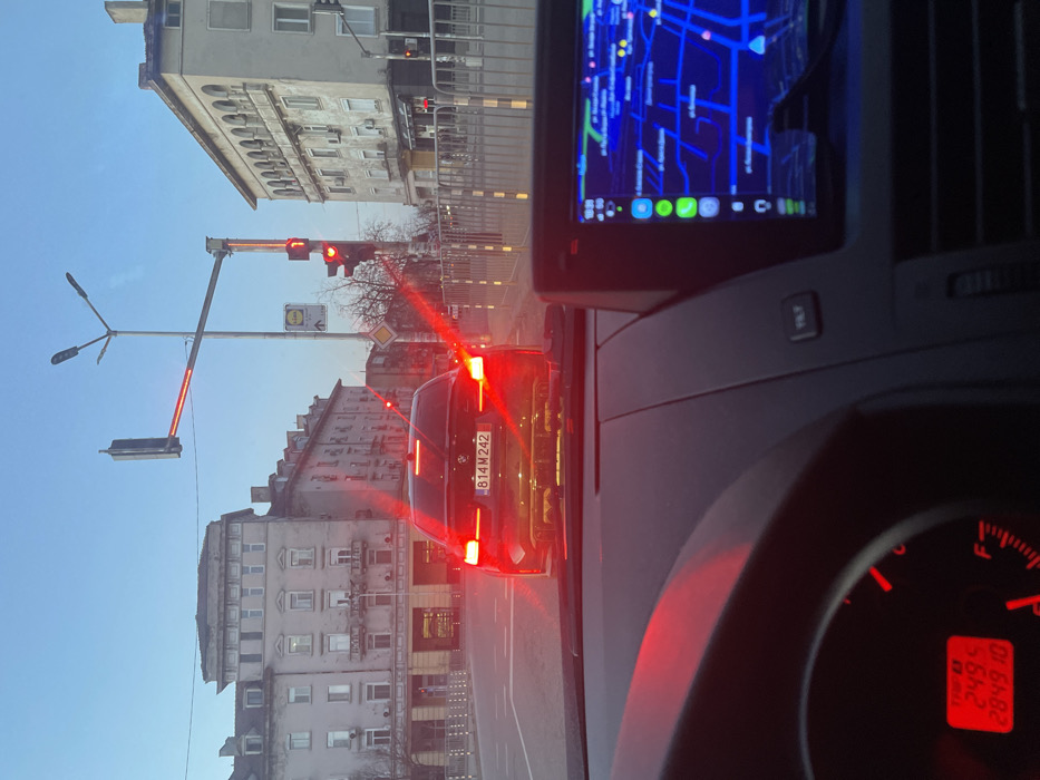 - "The image depicts a static urban scene captured from the interior of a vehicle, looking forward through the windshield" by FM-H8AfK2, licensed under CC BY 4.0