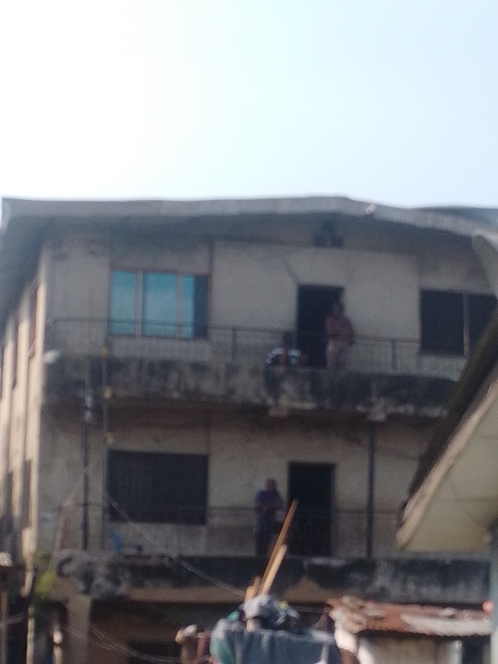 A multi-story concrete building in Animashawun, Nigeria, is observed under clear daylight conditions