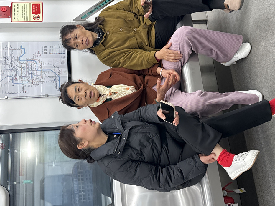 - "The scene depicts three adult East Asian women seated side-by-side on a metallic bench inside a subway or metro car in the city of Tiaodeng, China" by FM-EsMgg1, licensed under CC BY 4.0