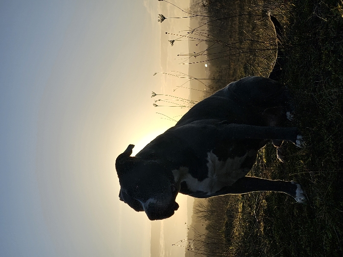 - "A dog is silhouetted against the sun, standing on a grassy area" by FM-n22Rc2, licensed under CC BY 4.0