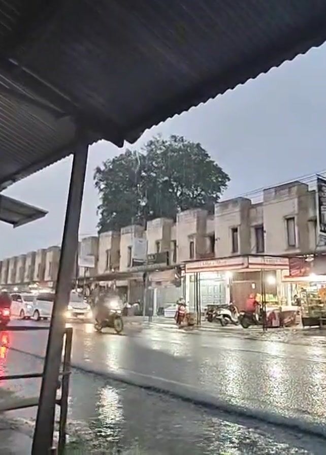 street in what appears to be an urban area during rainfall