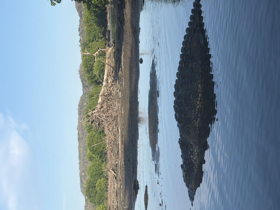 - "A crocodile floats in shallow water next to a muddy riverbank" by FM-TOA2r1, licensed under CC BY 4.0