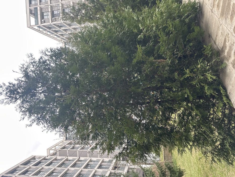 - "The image displays a residential scene in Sofia, Bulgaria, dominated by a tall, dense, dark green conifer tree positioned centrally in the foreground and midground" by FM-2doom2, licensed under CC BY 4.0