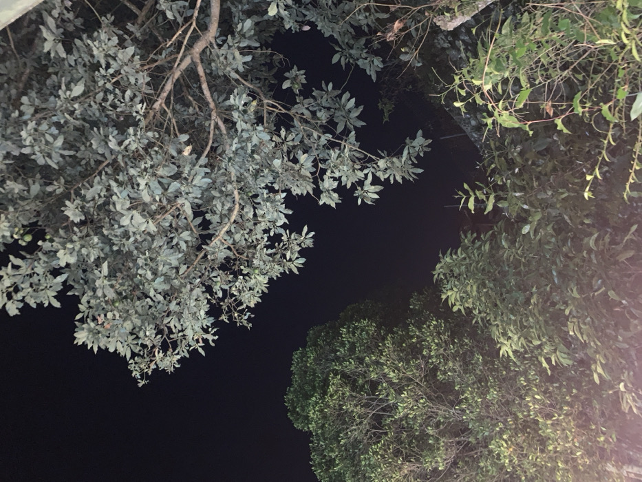 - "This night-time image, recorded in Cipanas, Indonesia, features a dense arrangement of trees and foliage illuminated against a dark, unlit sky" by FM-KUcUc2, licensed under CC BY 4.0