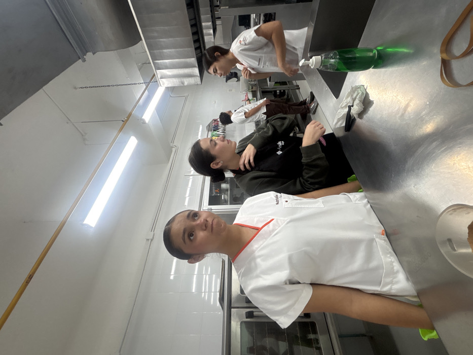 The scene is an indoor commercial kitchen or food preparation lab in Chablekal, Mexico