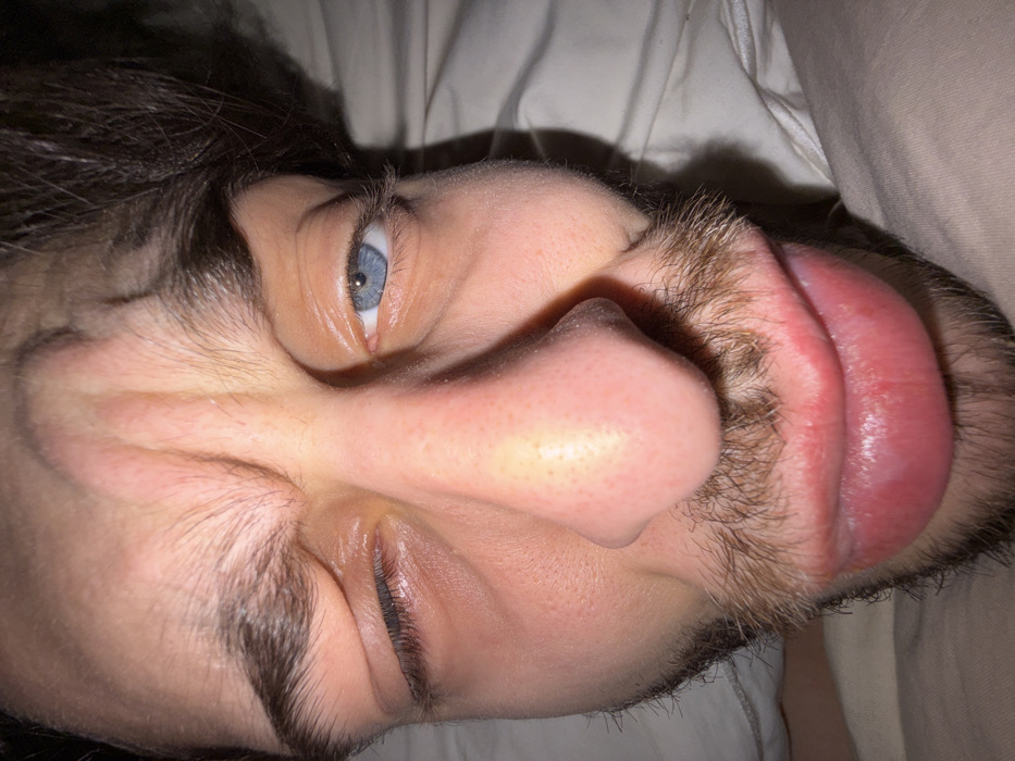 This close-up, wide-angle image depicts the face of a male individual in the city of Unknown, Unknown