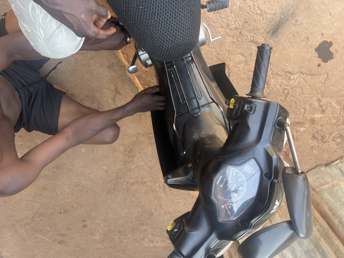 - "The scene, located in Birnin Kebbi, Nigeria, depicts two individuals engaged in maintenance on a black underbone motorcycle, viewed from an elevated perspective" by FM-XdnF53, licensed under CC BY 4.0
