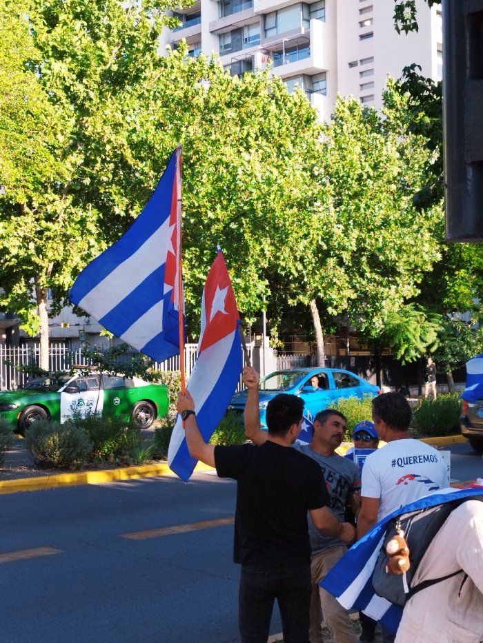 - "Several people are standing on a street corner, holding Cuban flags" by FM-ZqBmD2, licensed under CC BY 4.0