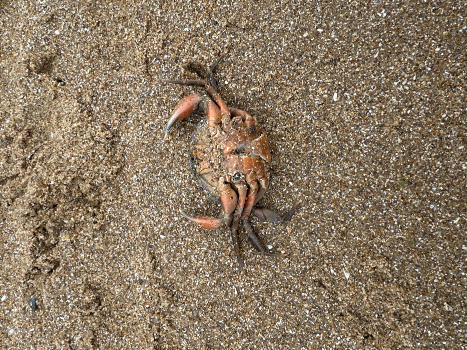 - "A deceased crab is positioned inverted on a sandy beach in Thanet, United Kingdom" by FM-13LyK2, licensed under CC BY 4.0