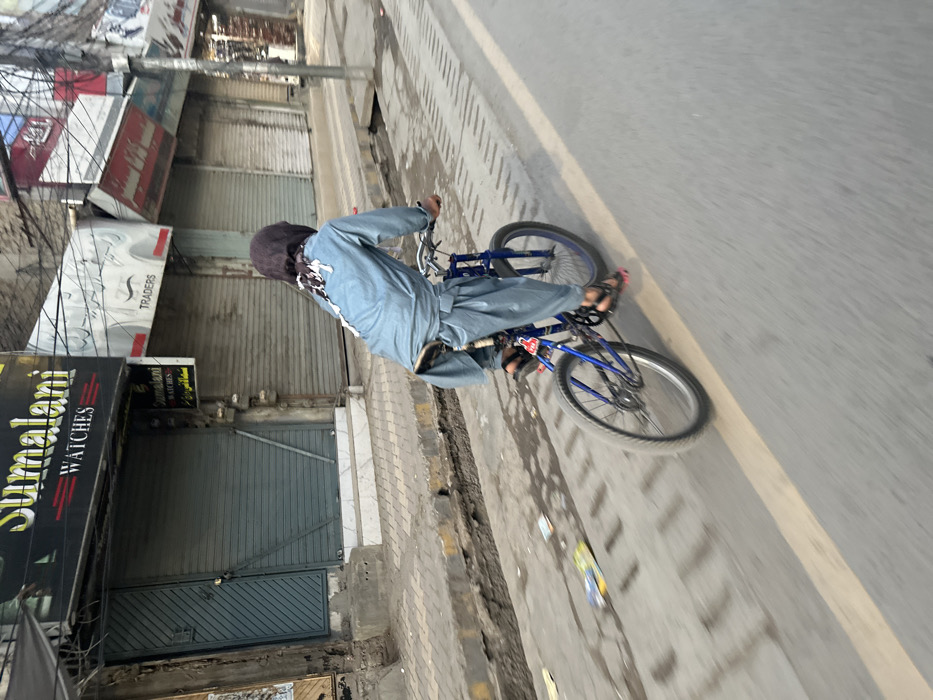 - "A lone individual rides a blue bicycle on a paved street in Quetta City Tehsil, Pakistan" by FM-KEB4x1, licensed under CC BY 4.0