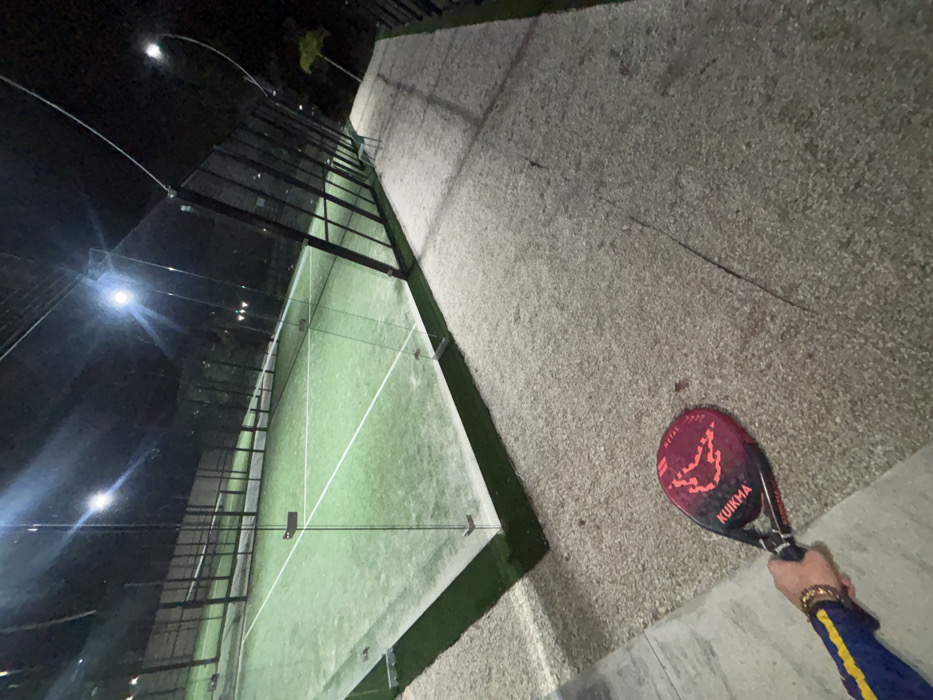 - "The image displays an outdoor padel tennis court at night, located in Privada Residencial Blue Cedar, Mexico" by FM-6Fibs2, licensed under CC BY 4.0