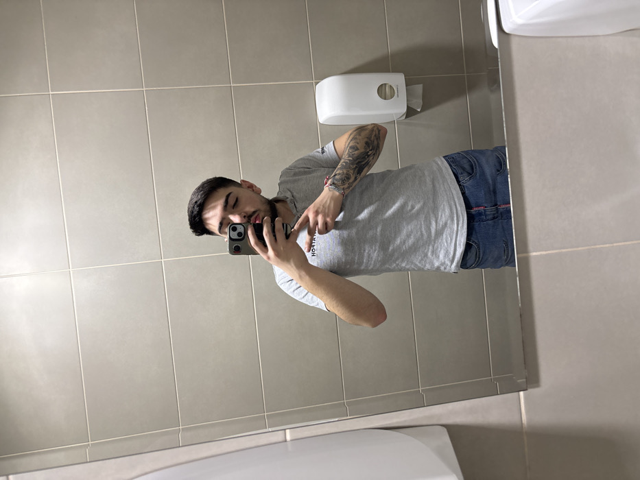 - "The image displays a male individual's reflection in a mirror, located in a public restroom setting within the city of Montana, Bulgaria, as indicated by the reversed "MONTANA" text visible on his shirt" by FM-1ttN12, licensed under CC BY 4.0