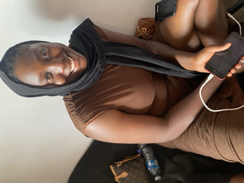 A dark-skinned adult female is depicted seated indoors in Sabon Tasha, Nigeria