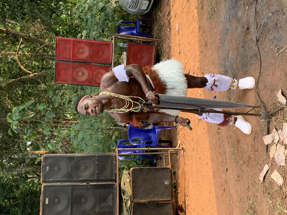 An outdoor scene in Nnobi, Nigeria, depicts an adult male in a performance setting