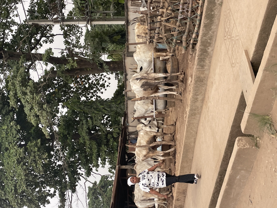 The scene, set in Ota, Nigeria, features an adult female walking past a cattle enclosure