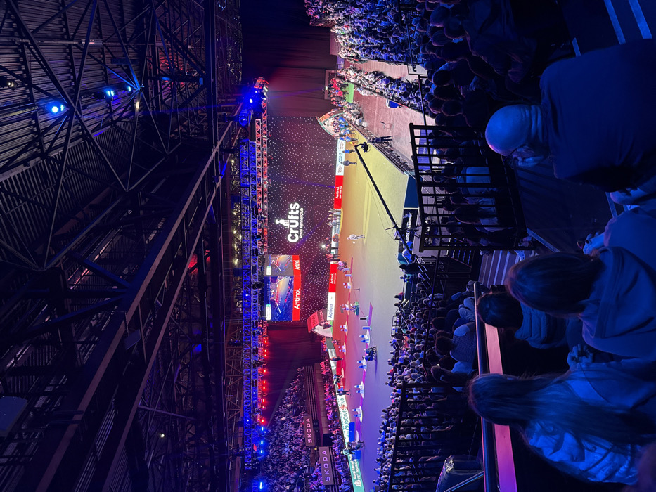 - "The image depicts a large-scale indoor arena event, identified as "Crufts Royal Kennel Club" by the prominent logo on the main LED display screen" by FM-BChR62, licensed under CC BY 4.0