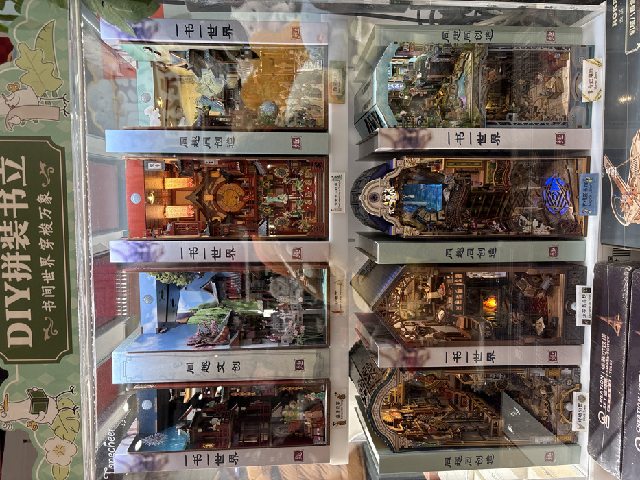 - "The scene depicts a retail display in Taihe District, China, showcasing ten illuminated miniature diorama book nooks" by FM-xKLI72, licensed under CC BY 4.0