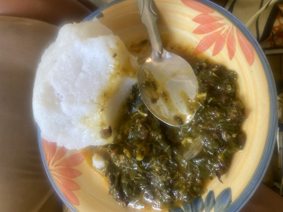 The image displays a close-up of a meal served in a bowl, situated in Nakuse, Nigeria