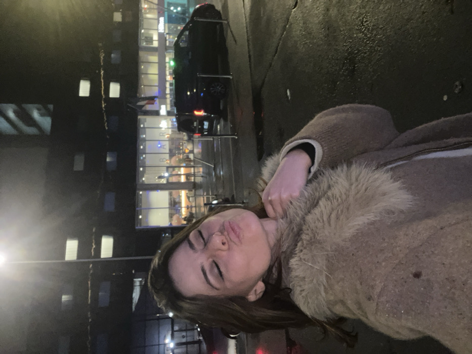 - "A woman in a brown jacket with a furry collar puckers her lips for a selfie at night" by FM-2aYl13, licensed under CC BY 4.0