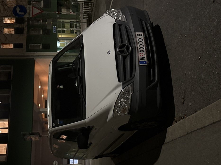 - "The image displays a white Mercedes-Benz Vito/Viano van parked parallel to a curb on an urban street at night in Vienna, Austria" by FM-iShsw2, licensed under CC BY 4.0