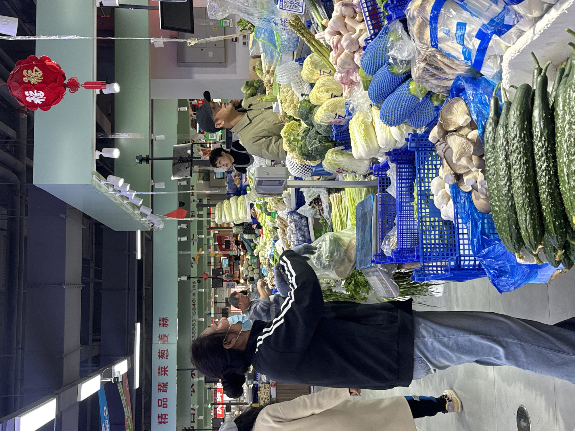 - "The image depicts a bustling indoor marketplace, likely in Guta, China, featuring various vegetables such as cucumbers, mushrooms, cabbage, broccoli, garlic, asparagus, and celery" by FM-cNMoN2, licensed under CC BY 4.0