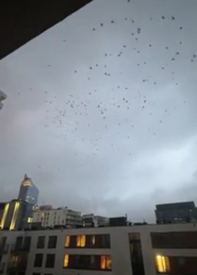 - "The video captures a large flock of birds flying in the sky over a city" by FM-R7pAQ2, licensed under CC BY 4.0
