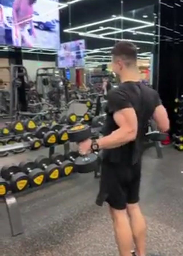 A man is working out in a gym