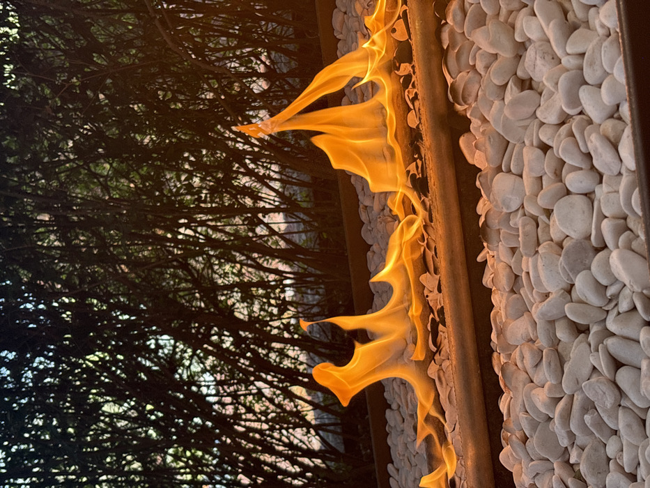 - "A fire pit exhibits flames dancing vertically next to a metallic enclosure filled with small, white pebbles" by FM-FnHOE2, licensed under CC BY 4.0