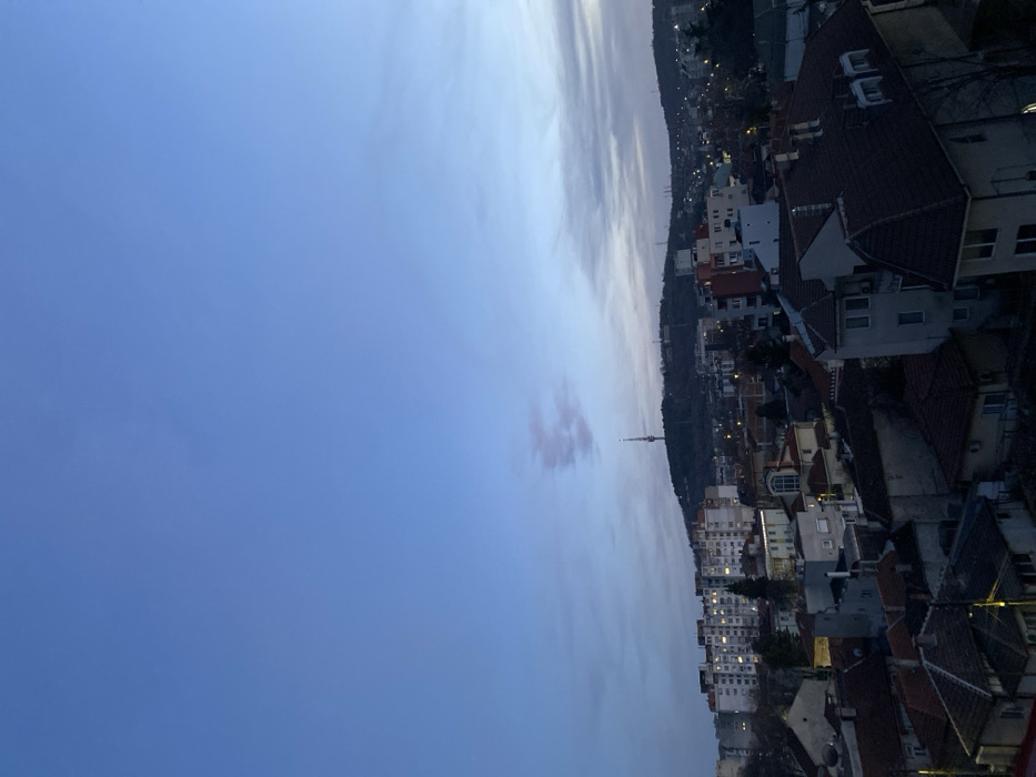 This image presents an elevated urban landscape of Silistra, Bulgaria, during twilight